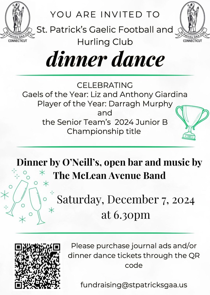 The best night of the year is quickly approaching! We will be celebrating the honorees along with our very own 2024 Junior B Championship team! Music by The McLean Avenue Band and dinner by O'Neill's of Norwalk. Ticket includes open bar, dinner, music and lots of fun!
